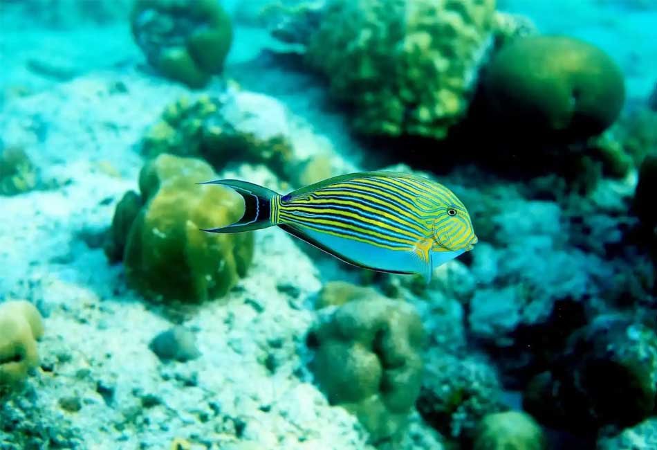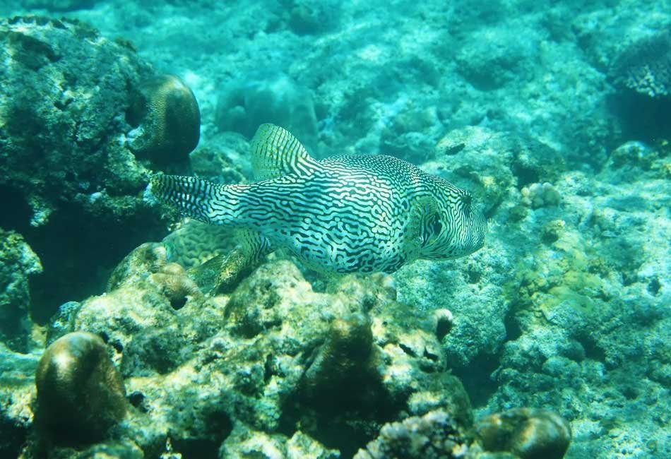 Start your day snorkeling at Aquarium Reef, where you will see colorful corals and a variety of marine life.